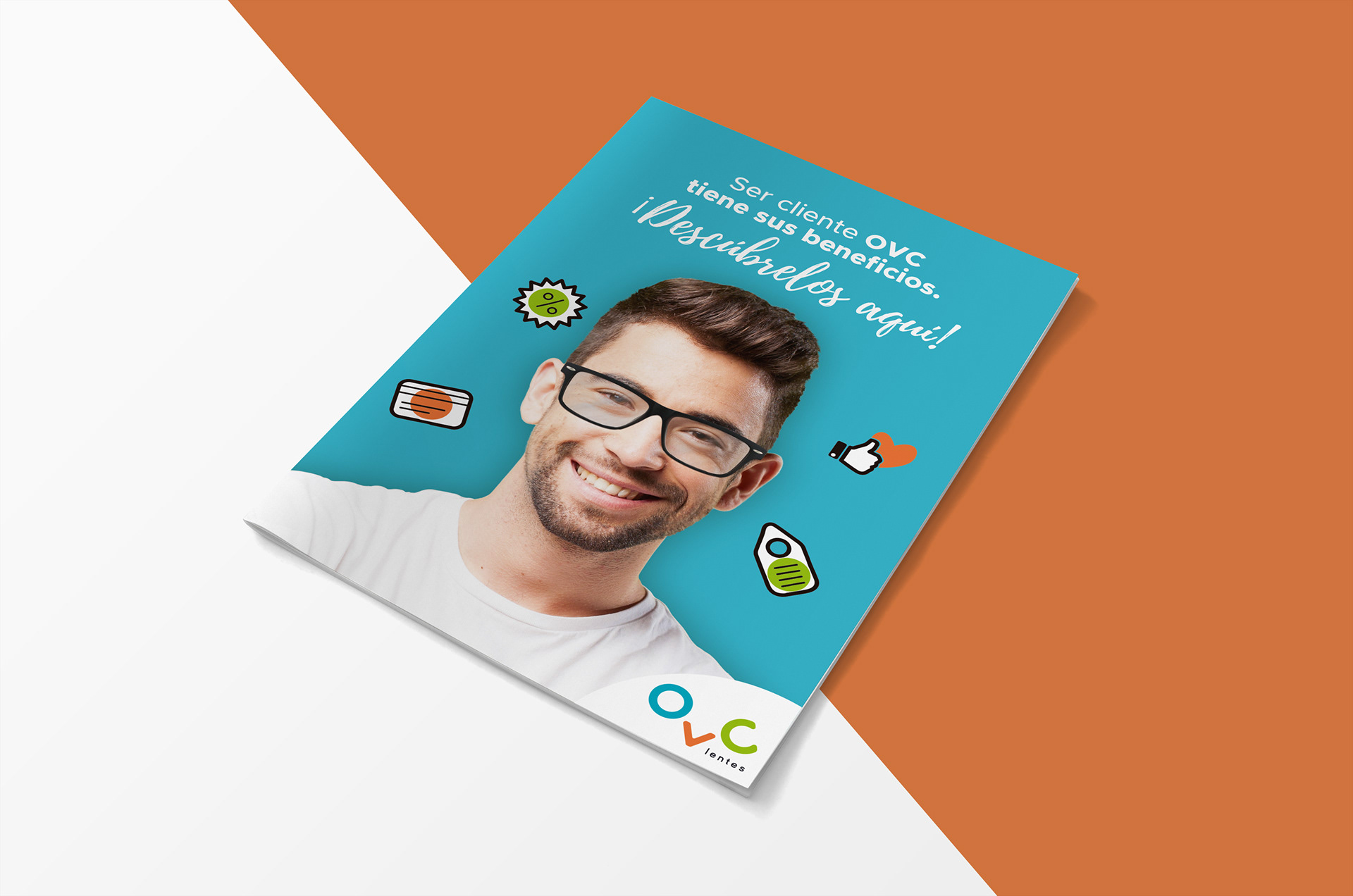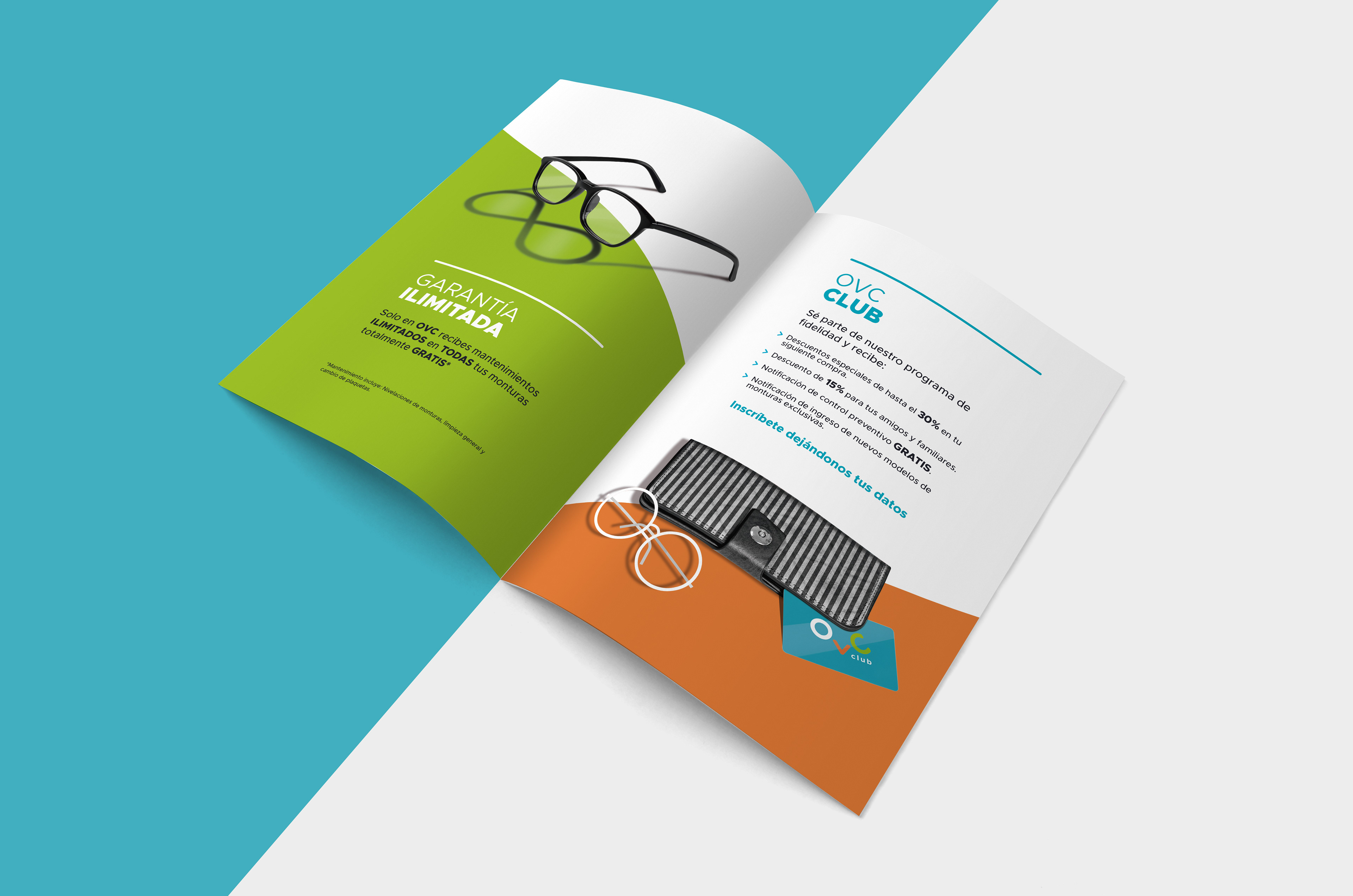 Díptico informativo de beneficios para nuevos clientes de OVC Lentes.